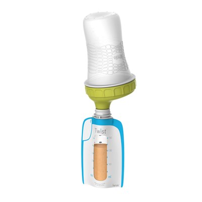 Anne sütünü saklama poşeti ile biberon arasında transfer etmeye gerek kalmadan, bebeğinizi direkt olarak Kiinde Twist Pouches süt saklama poşetinden besleyiniz. Sütü eritip ısıttıktan sonra saklama poşetini SqueezeT doğal biberona takınız, içindeki havayı sıkarak çıkartınız ve Active-Latch biberon başlığını üzerine takınız.