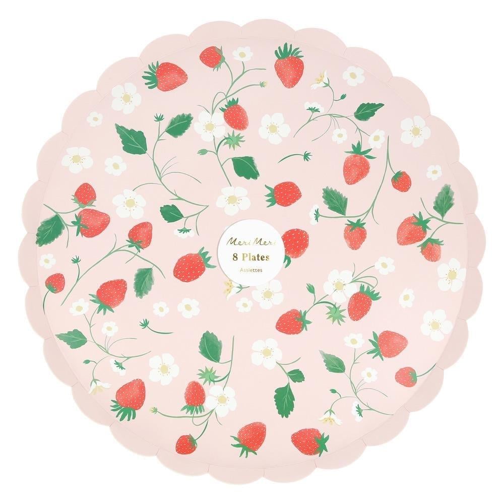 Tasarımcılarımız, bu şık kağıt yemek tabaklarını yaratmak için ilham kaynağı olarak lüks kumaşları aldılar, çilekleri çiçeklerle, taraklı bir kenarla ve soluk pembe bir arka planla zahmetsizce bir araya getirerek özel bir şey yarattılar.